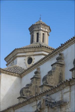 | Resumen: | Edificio de la segunda mitad del siglo XVII, reformado en el siglo XVIII, al que se adosa un pequeño claustro de planta cuadrada con arcos de ladrillo sobre columnas y pilastras en la planta alta. El templo es de una nave con bóveda de cañón y arcos fajones y capillas laterales entre los contrafuertes. Tiene cabecera plana y cúpula sobre pechinas en el crucero, decorada con yeserías. La portada principal está flanqueada por pilastras cajeadas que culminan en frontón curvo y partido. En el ángulo derecho se levanta la torre, una de las más hermosas de la provincia, edificada entre 1767 y 1775 por el alarife Alonso Ruiz Florindo. Consta de cuatro cuerpos y chapitel, combinando los sillares y el ladrillo en una decoración de festones y placas recortadas, con portadas entre balaustres corintios en el cuerpo inferior. |