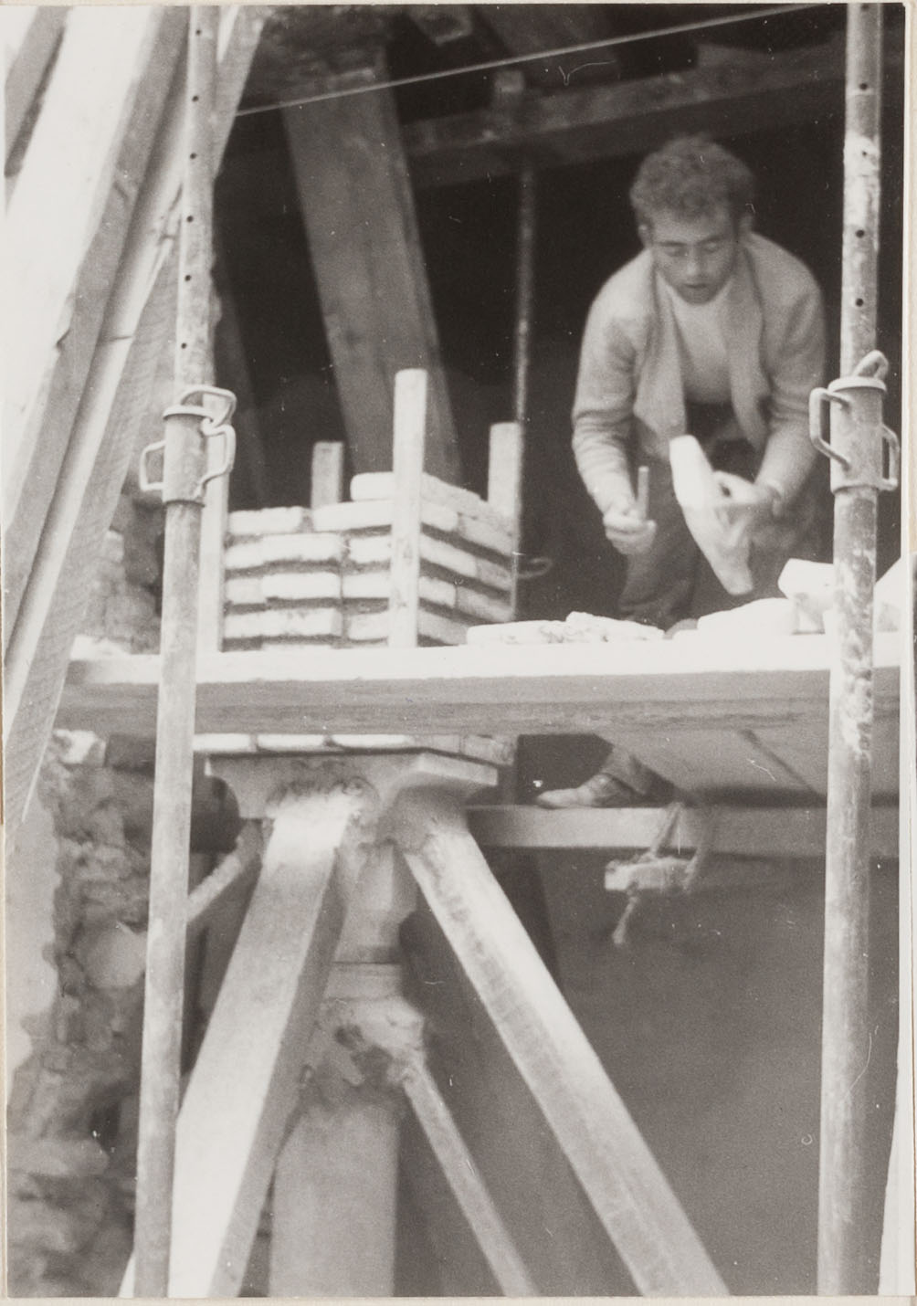 Hormigonado del faldón de la cubierta sobre la malla – encofrado. Iglesia del Santo Cristo de la Salud.