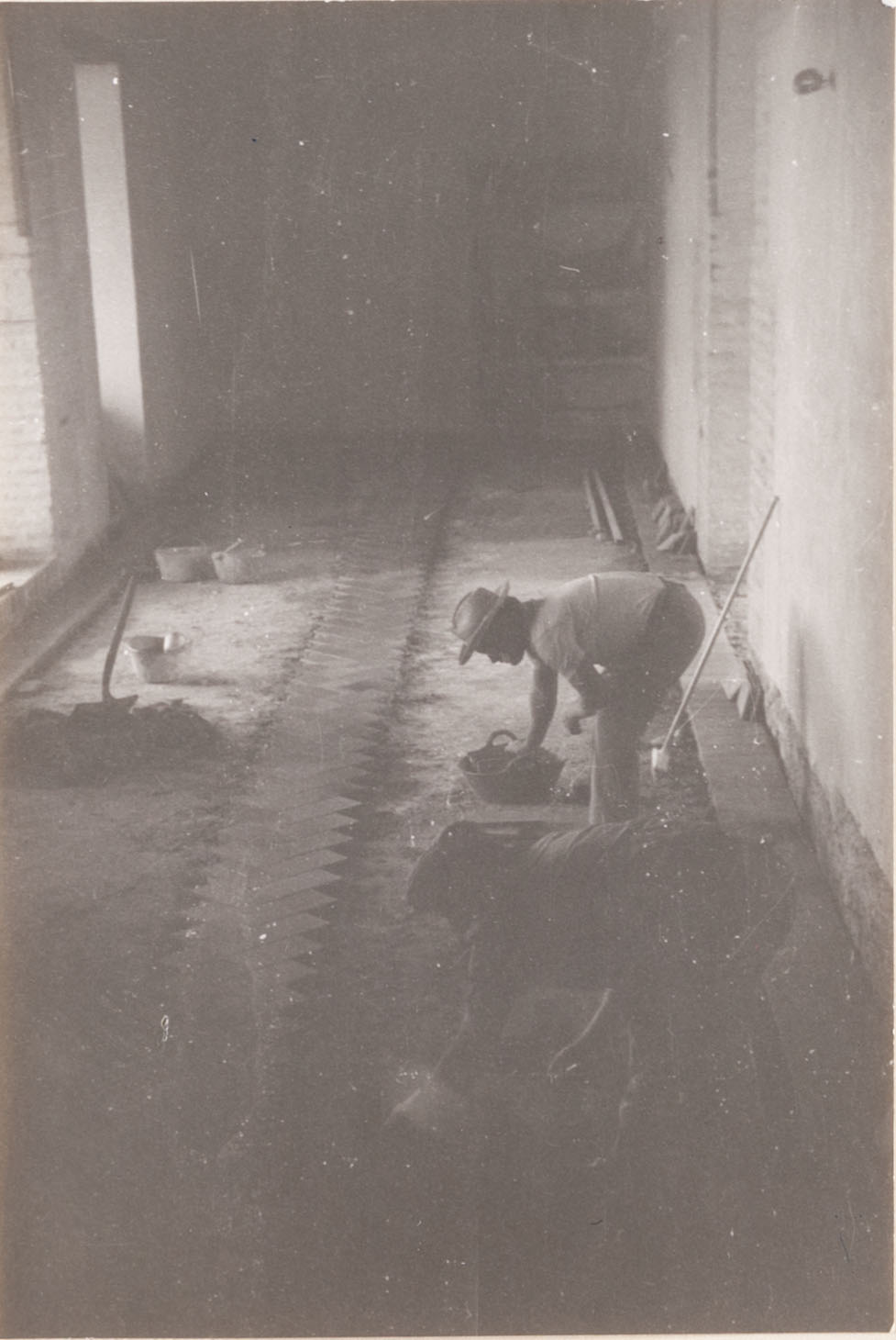 Hormigonado del faldón de la cubierta sobre la malla – encofrado. Iglesia del Santo Cristo de la Salud.