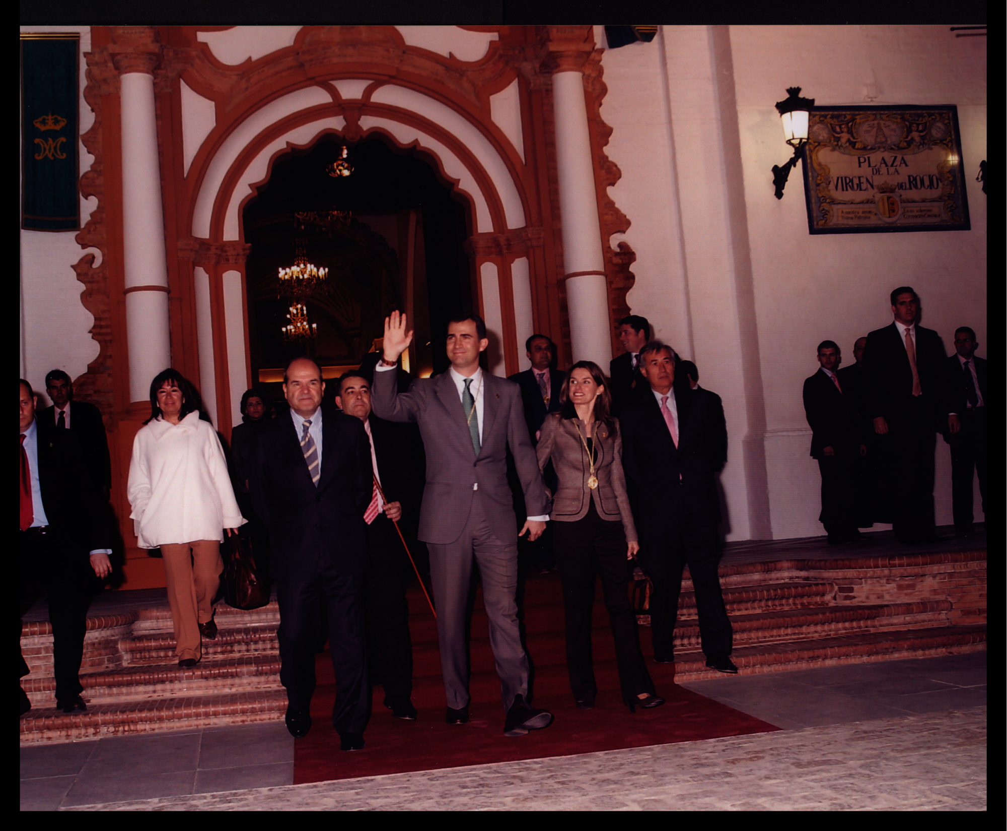 | Denominación del Bien: | Los Príncipes de Asturias a la salida de la parroquia de la Asunción de Almonte acompañados por Manuel Chaves y Francisco Bella en su visita de 2006 (Fotografías). Fondo Hermandad Matriz de Nuestra Señora del Rocío de Almonte (282772) |