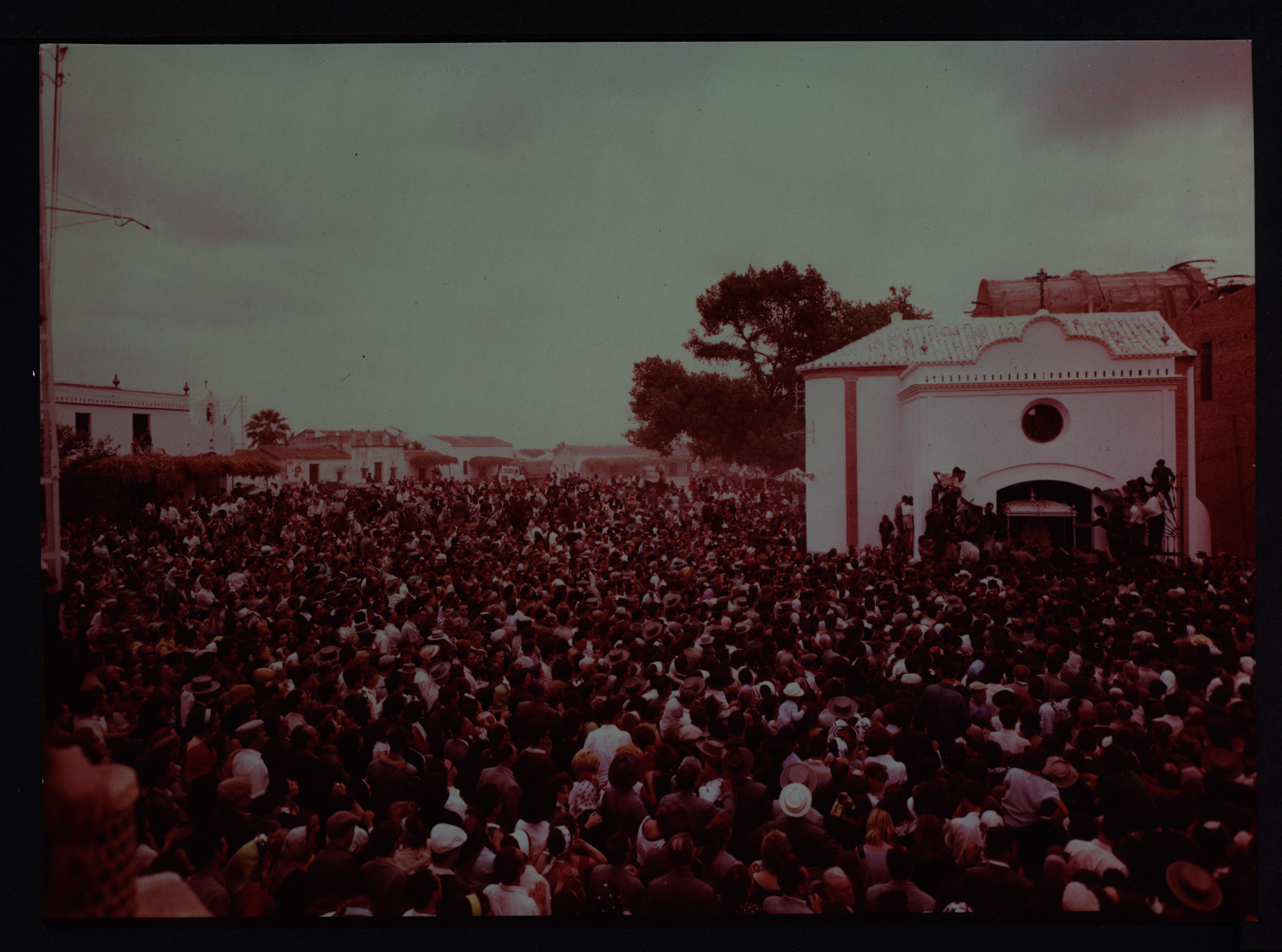| Denominación del Bien: | Reportaje de la salida de la Virgen del Rocío de la Capilla provisional comenzando su procesión por la aldea en una de las Romerías del periodo 1964-1968 (Fotografía). Fondo Hermandad Matriz de Nuestra Señora del Rocío de Almonte (282177) |