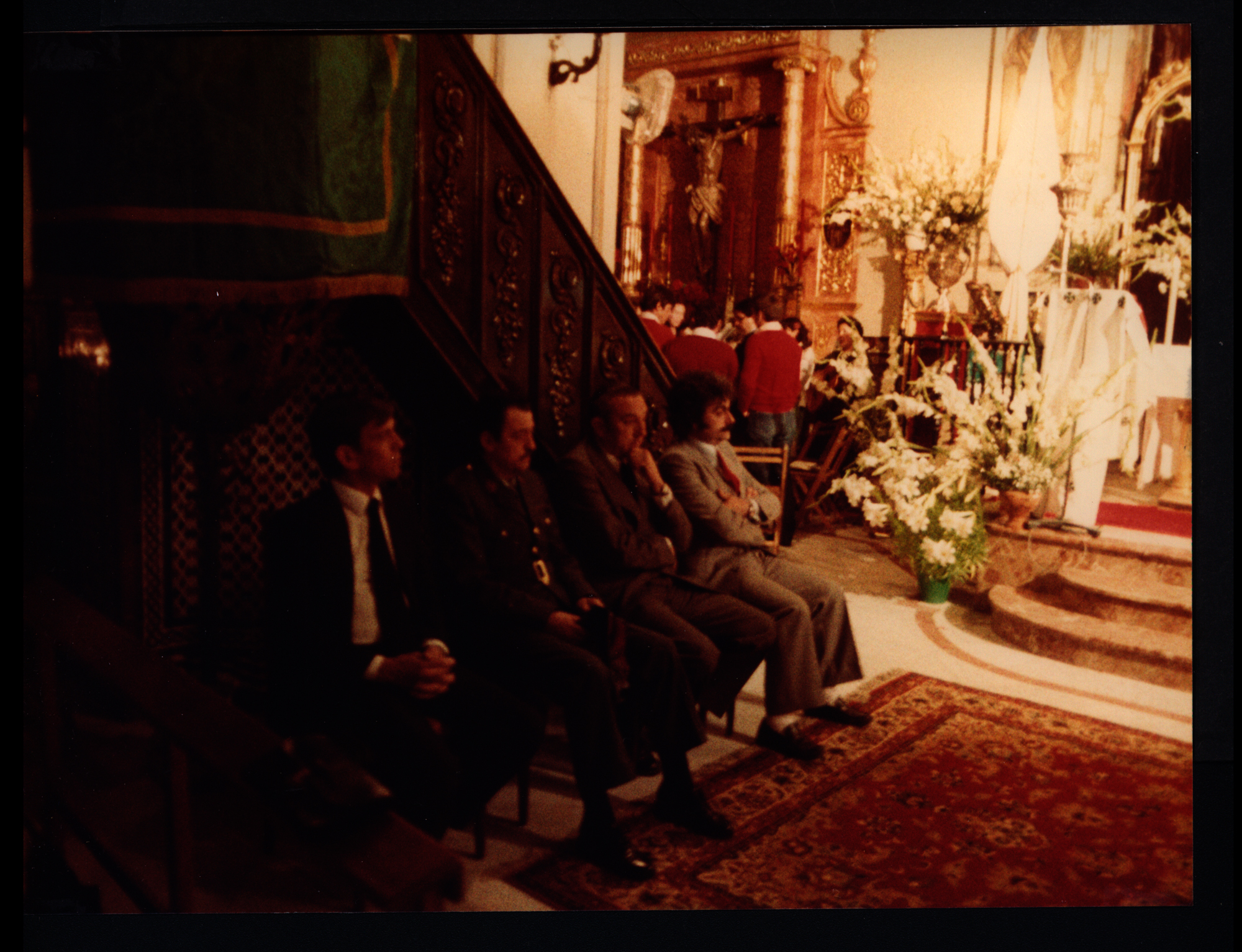 Autoridades militares y locales en la Novena a la Virgen del Rocío en la parroquia de la Asunción de Almonte en los actos de la Romería de 1983 (Fotografía). Fondo Hermandad Matriz de Nuestra Señora del Rocío de Almonte