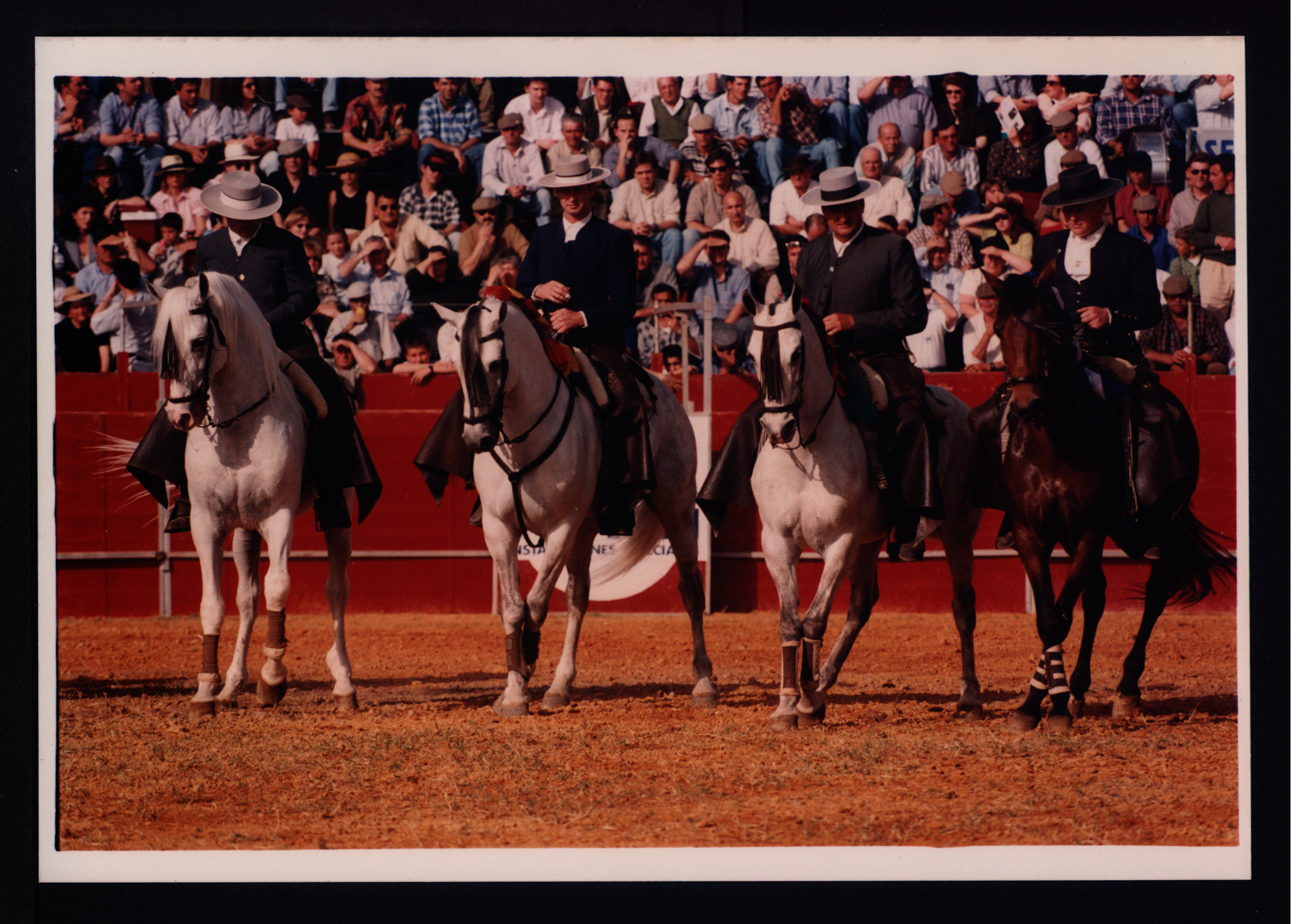 | Denominación del Bien: | Luis Domec, Antonio Domec, Javier Buendía y Pedro Cárdenas, rejoneadores participantes en el Festival del Arte del Rejoneo, organizado por la Hermandad Matriz (Fotografía). Fondo Hermandad Matriz de Nuestra Señora del Rocío de Almonte (282524) |