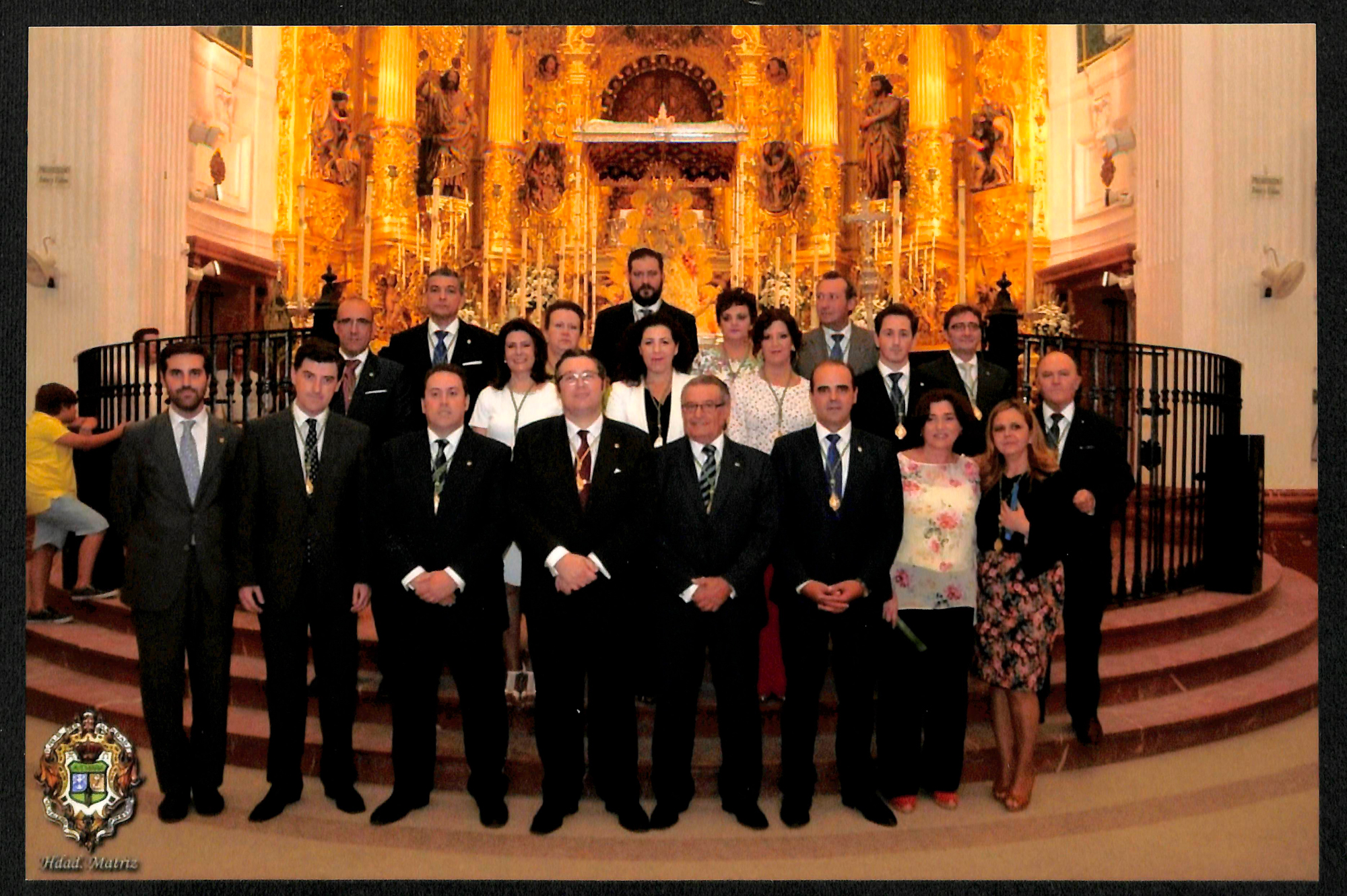 Denominación del Bien: Nueva Junta de Gobierno de la Hermandad Matriz posa ante la Virgen del Rocío tras su toma de posesión en 2015 (Fotografía). Fondo Hermandad Matriz de Nuestra Señora del Rocío de Almonte (283516)