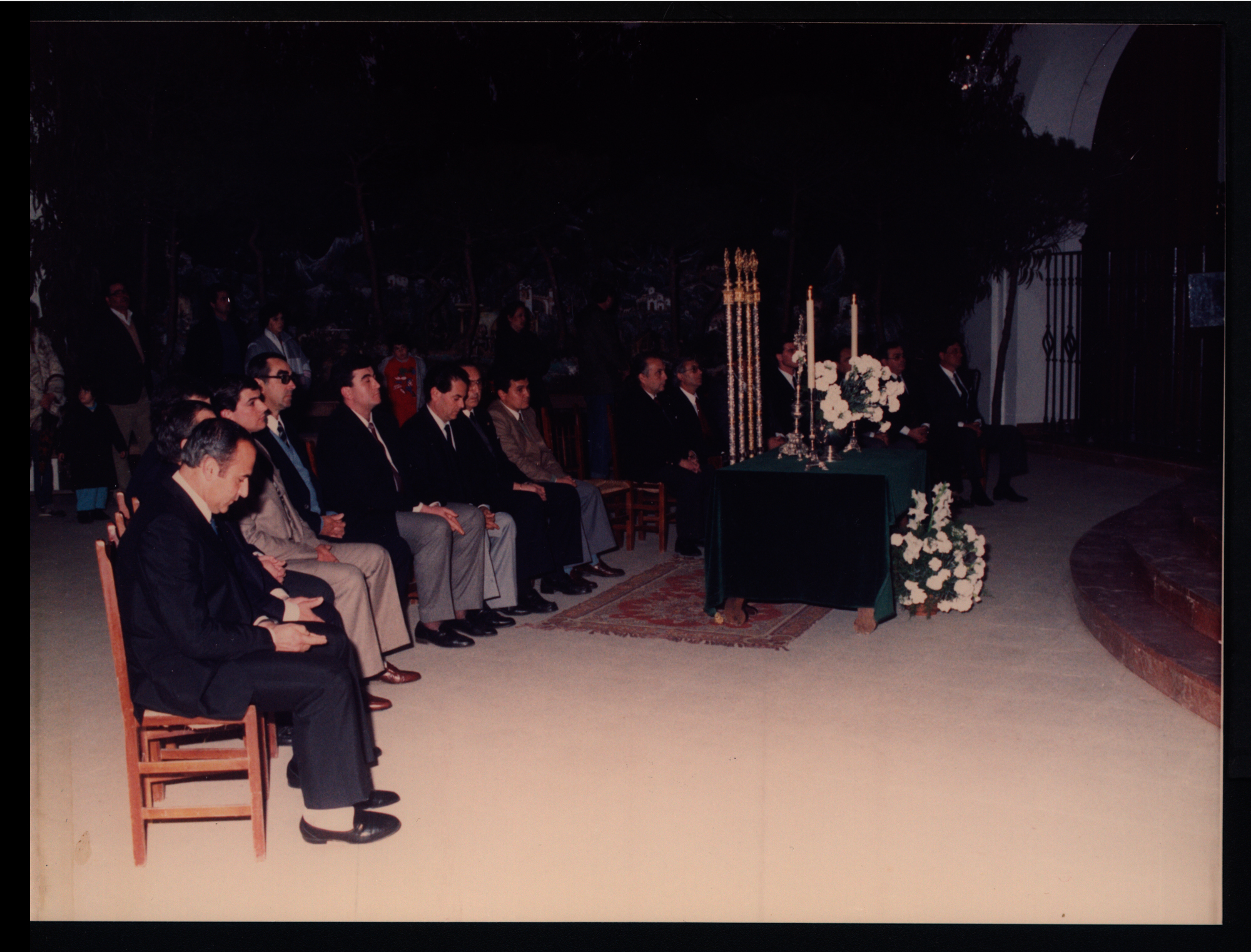| Denominación del Bien: | Miembros de la nueva Junta de Gobierno de la Hermandad Matriz sentados ante el Belén colocado en el Santuario durante su toma de posesión en 1988 (Fotografía). Fondo Hermandad Matriz de Nuestra Señora del Rocío de Almonte (283531) |